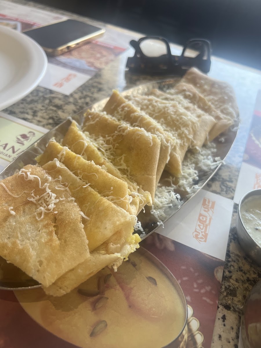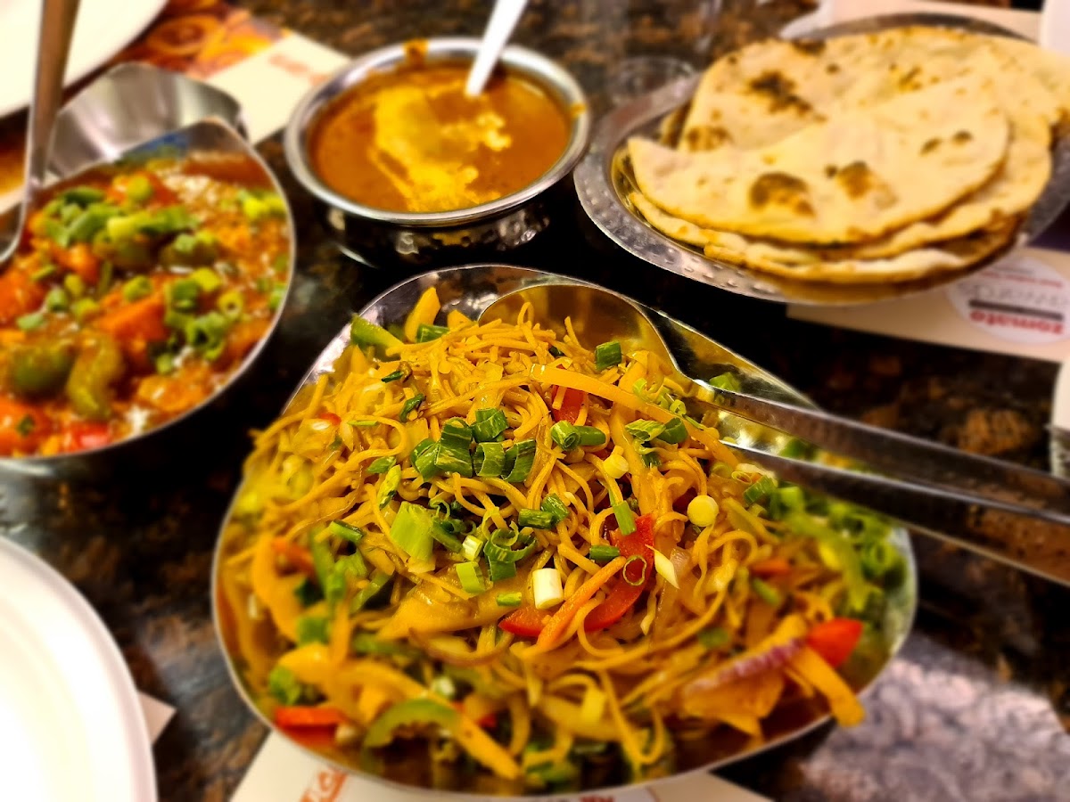 The menu has a strong focus on classic dishes, offering variety within vegetarian North Indian and South Indian staples. From the comforting Punjabi Thali and North Indian Thali sets to street-food style treats like Papdi Chaat and Mutter Paneer Samosa, there’s a mix of flavors that appeal to people familiar with Indian cuisine as well as those dipping their toes in. Items like Moong Dal Halwa and Boondi Laddoo bring a sense of nostalgia for anyone who grew up in the region or has a sweet tooth for traditional desserts. Those craving lighter or snack options can also explore dishes like Onion Uthappa or a Cheese Dosa, making it flexible for different meal occasions.