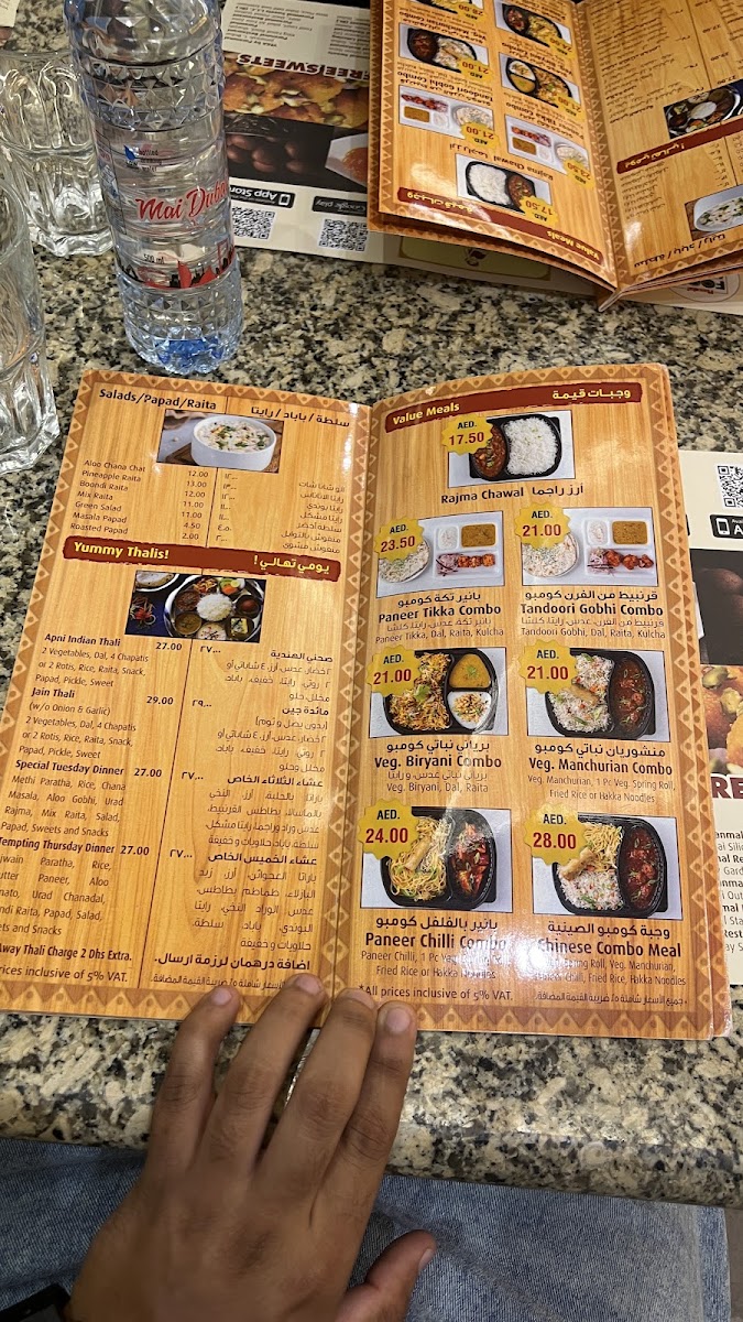 Bhakhri & Khakhra: This section includes traditional Indian flatbreads such as Methi Bhakhri, Jeera Khakhra, and Chilli Garlic Khakhra. These items are typically served as light snacks or accompaniments.